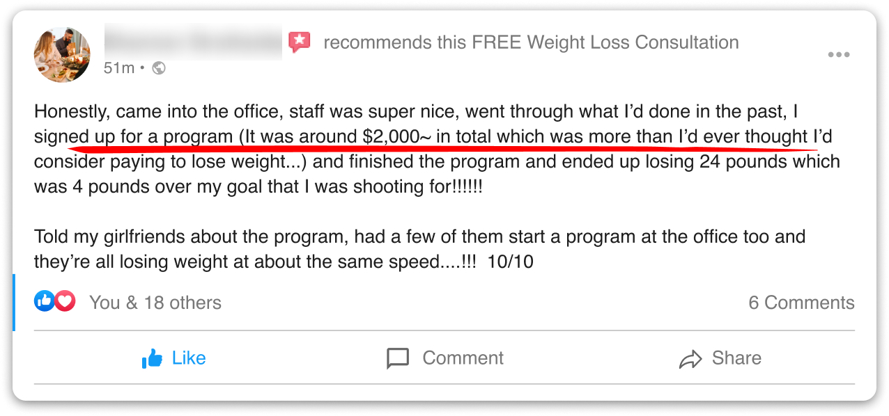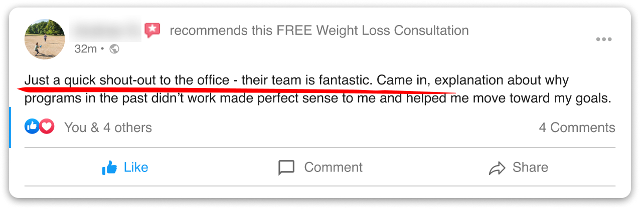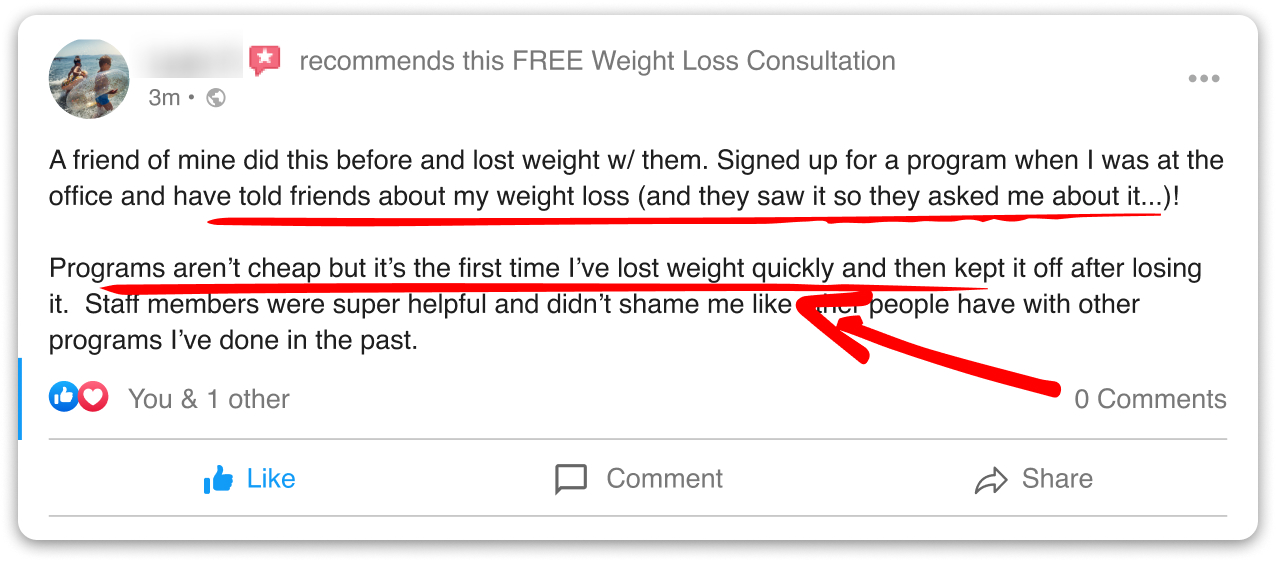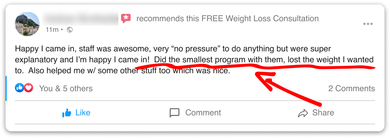 But, we think it’s super important that everyone can afford and easily get the help they need to lose weight! That's why we are giving you a chance to have a weight loss consultation for free! We really want to help folks who have tried hard to lose weight but still struggle.