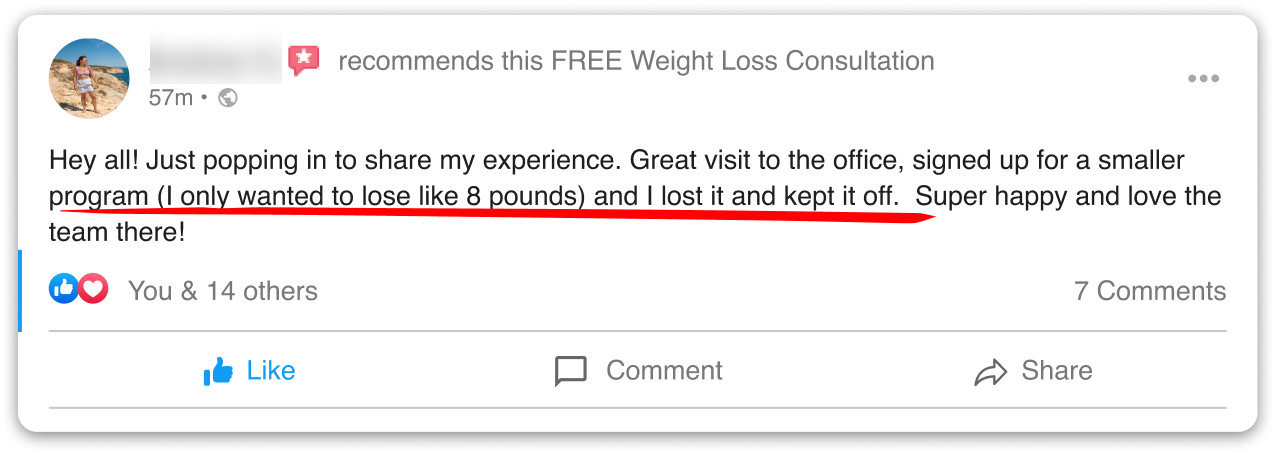 With our special, limited-time free offer, we hope more people in our town can try our personalized weight loss programs. This way, more of our neighbors can start living healthier, happier lives!